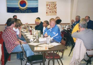athletes and coaches enjoy breakfast with the Optimists in November.